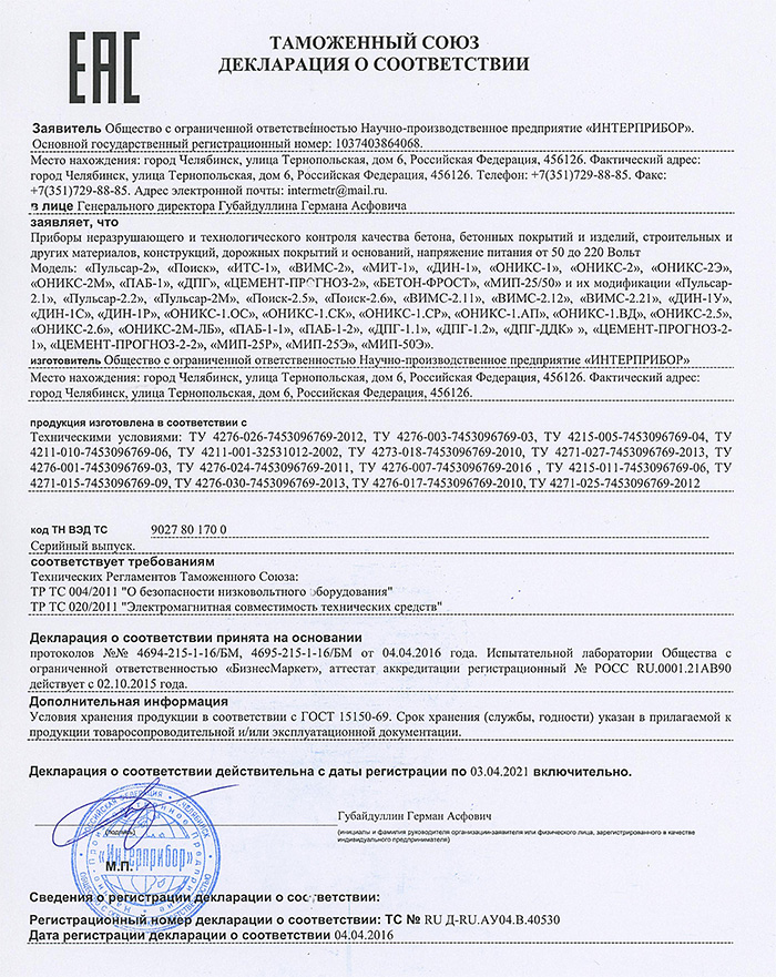 Руководство по эксплуатации (с отметкой о поверке)